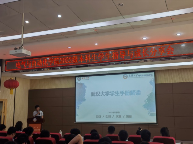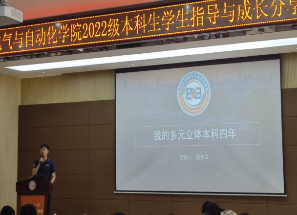 举行了2022级本科生学习指导与成长分享会,电气学院代管的工科试验班全体新生参加,2022级本科生王子涵主持本次活动。