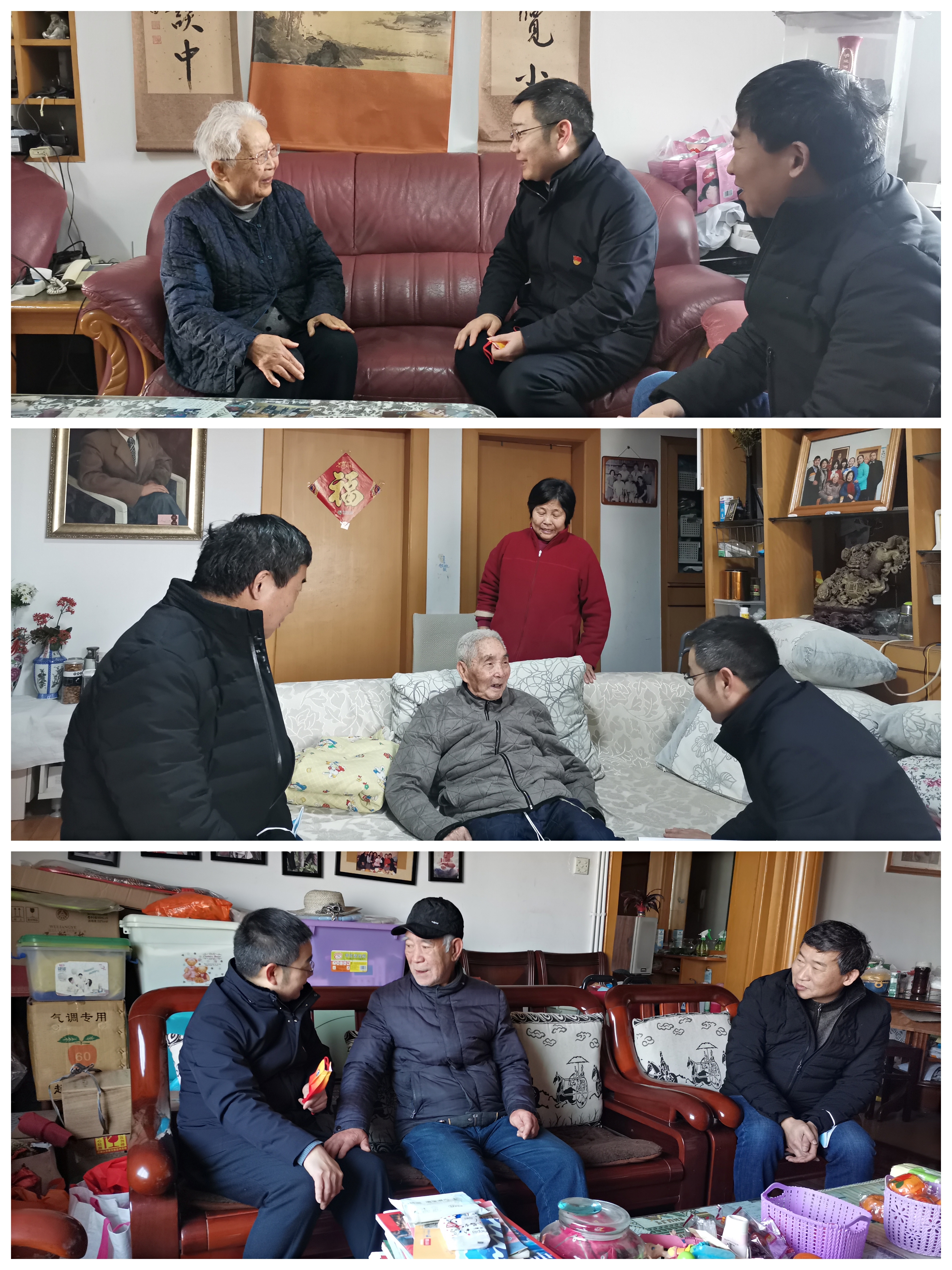 院班子成员分别来到离退休老同志家里,同他们忆往昔、聊近况、话发展。关切地询问他们的日常生活和身体情况,了解老同志们生活中的困难和问题并想方设法积极解决;汇报了学院教学科研等方面的发展近况,认真听取他们对学院工作的意见建议,对他们多年来为学院作出的贡献表示衷心感谢,希望老同志们今后继续发挥余热,一如既往地关心支持学院发展,多提诤言、多献良策。