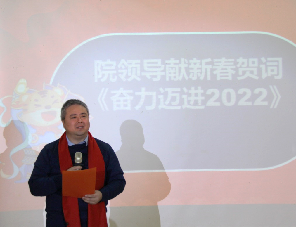 在精彩的服装秀后,学院领导们也走上了舞台,给大家送上新年祝福,精心准备的祝福赢得了现场的阵阵掌声和欢呼。随后,董旭柱院长作为代表,做新年致辞,首先感谢了全体师生在2021年为学校和学院发展做出的贡献,并祝福大家新的一年一切顺利,身体健康,同时期待大家为5楼自拍