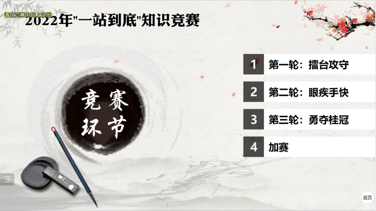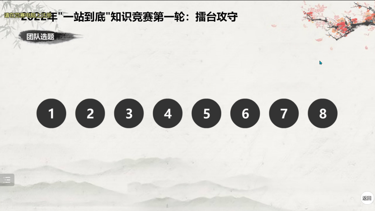 第二轮为必答题,每个队伍根据编号轮流答题。每个队伍的固定作答时间为90秒,回答正确得1分,回答错误扣1分,每个队伍有一次跳过机会。选手们个个摩拳擦掌,争分夺秒,你追我赶,在90秒内不断刷新答题次数。经过了激烈的角逐,积分排名前四的队伍进入第三轮比赛。