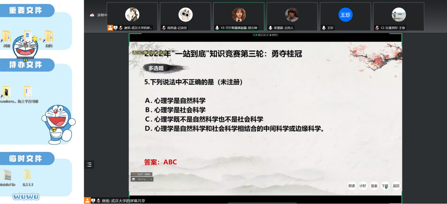 研究生会承办。本次活动在增强趣味性的同时着力营造研究生优良健康的学习氛围,不仅促进同学们深入了解党史校史、珞珈故事、自然科学、人文社科知识,更是通过竞赛的方式为同学们提供了发挥才能的舞台,也充分展现了我校学生的风采,丰富了校园文化生活。