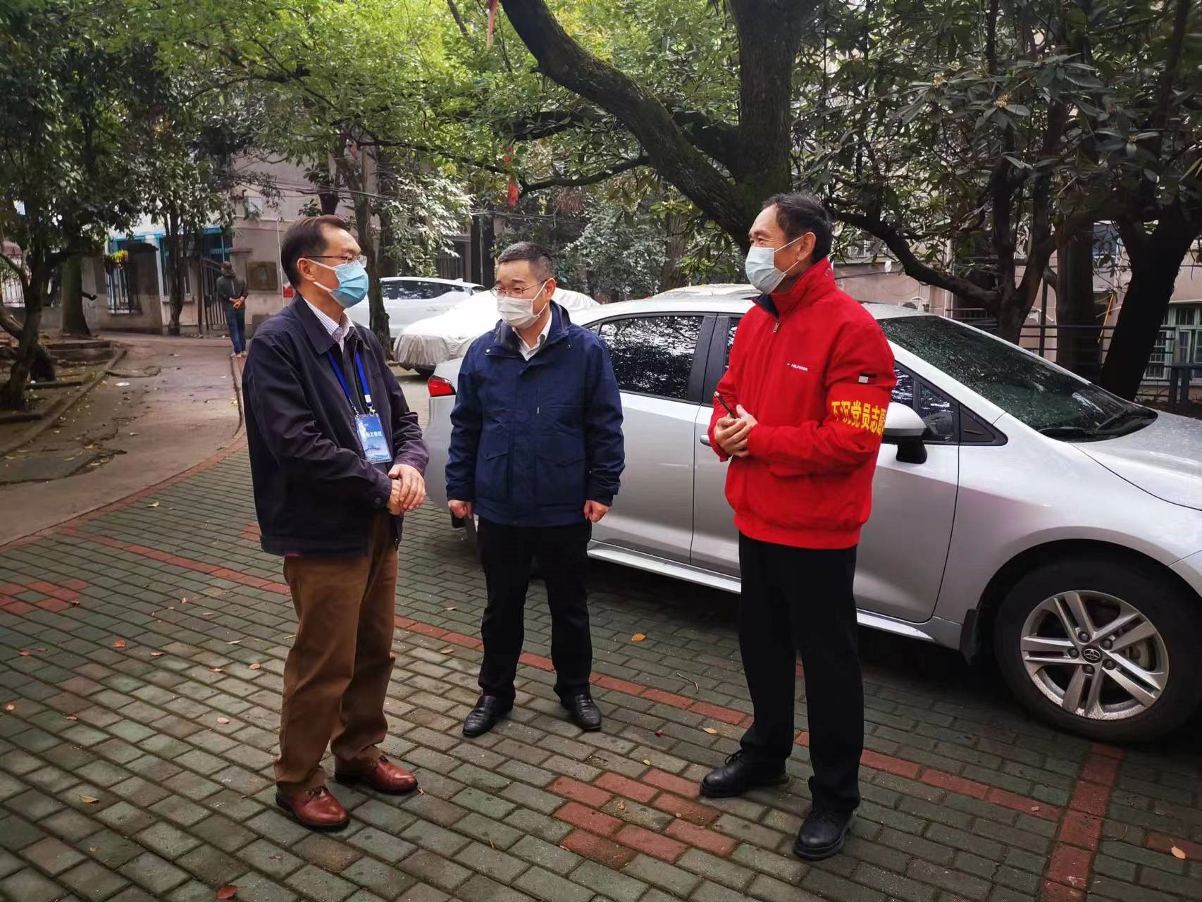 (学校党委副书记、纪委书记万清祥看望值守的党员突击队老师)