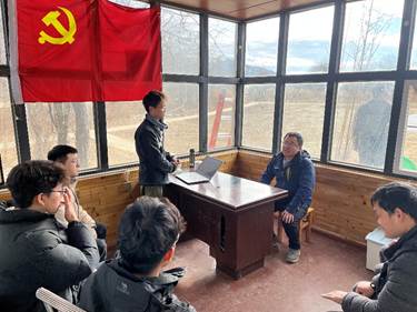 试验团队主动担当作为,积极响应南网科研院高压所号召,同华北电力大学和迪庆供电局一道,共同加入“迪庆高海拔试验联合临时党支部”,把党旗插在野外工作一线,把党建融入重大科研攻关任务,保证试验研究工作的顺利进行。2022级硕士生方鲲给大家做题为《有电自远方来》的主题党课,讲述了我国电力事业发展的筚路蓝缕,鼓励各位同志敢于拼搏,积极向上,做到春节“不打烊”,干出新年“加速度”。