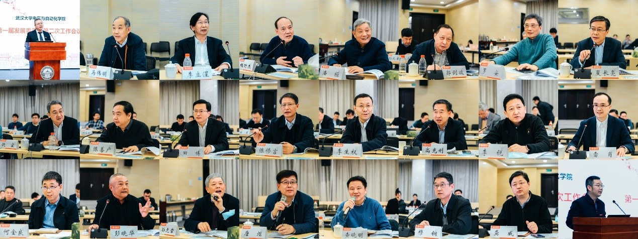 随后,围绕电气学院的汇报,以及学院平台建设、人才培养、成果培育、事业发展、校企联合等问题,海军工程大学马伟明院士,南方电网有限责任公司李立浧院士,华中科技大学程时杰院士、潘垣院士,中国电力科学研究院有限公司郭剑波院士,湖南大学罗安院士,天津工业大学夏长亮院士,南方电网科学研究院饶宏院士,中国载人航天办公室陈善广副总设计师,国家电网有限公司田博副总工程师、陈修言顾问,国网湖北省电力有限公司李生权董事长,中国电力科学研究院有限公司高克利总经理,南方电网有限责任公司广州供电局李锐书记、中国长江三峡集团有限公司科技创新部雷肖副主任,清华大学何金良教授,焰石投资彭晓华先生、东北电力大学穆钢教授等先后发言,从学科发展方向聚焦、多学科交叉融合、人才队伍建设、学科优势延展等方面认真建言献策,提出了很多建设性的宝贵意见和建议。