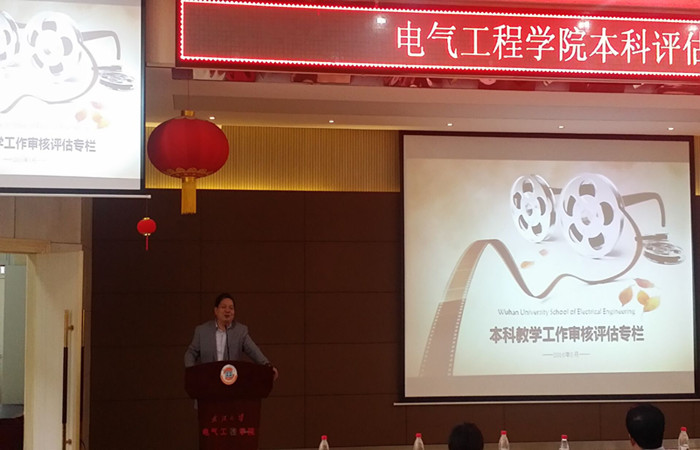 副院长刘开培教授重点解读了学校审核评估宣传手册,介绍了电气学院本科教学自评报告的总体情况;院长唐炬教授要求大家以良好的状态、饱满的热情迎接这次评估工作。