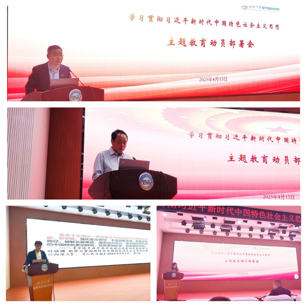 学习贯彻习近平新时代中国特色社会主义思想主题教育动员大会。就落实主题教育各项任务,他提出三点要求:一是要提高认识和政治站位,切实把思想和行动统一到党中央和学校党委的决策部署上来;二是要紧扣主题教育总要求,确保各项工作落到实处;三是要坚持目标导向和结果导向,推进学院事业高质量发展。