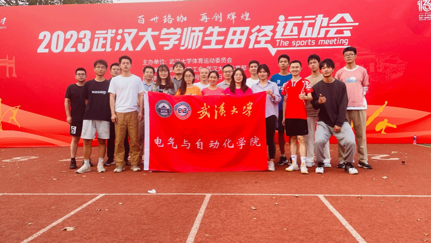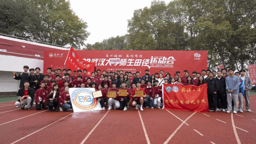 学生代表组成。且看院旗在队伍前方飘扬,口号被同学们高高举起,预示着电气学子跟随学院指引,实现“武大电气,中国电力,武大电气,自强弘毅”这一美好愿景。