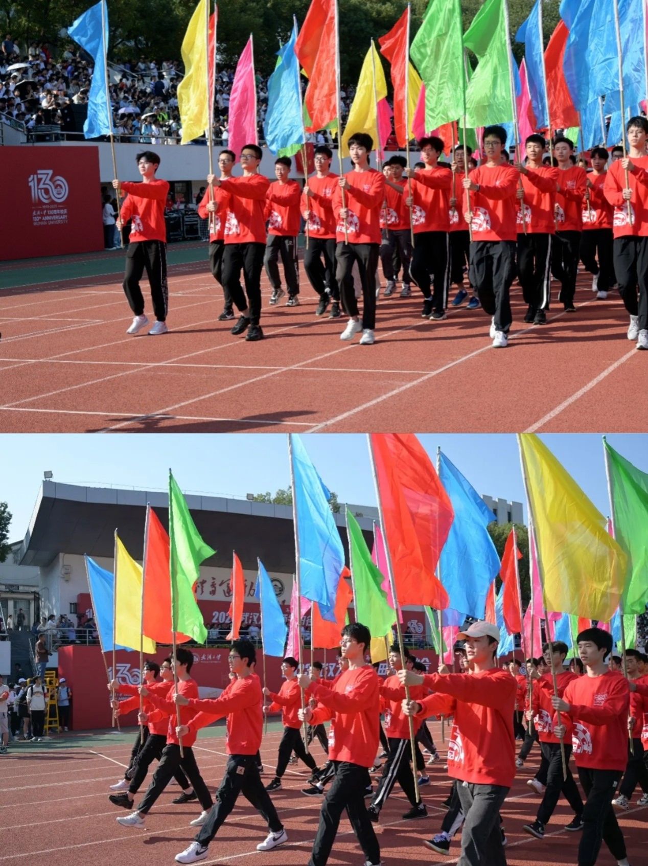 运动场上彩旗飘飘,引人注目,擎旗手们昂首阔步,英姿飒爽,这便是来自5楼自拍