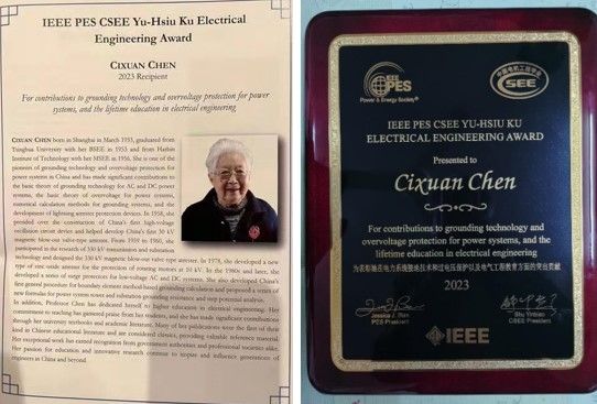 陈慈萱教授获得2023年“顾毓琇电机工程奖”,表彰她在电力系统接地技术和过电压保护以及电气工程教育方面的突出贡献。
