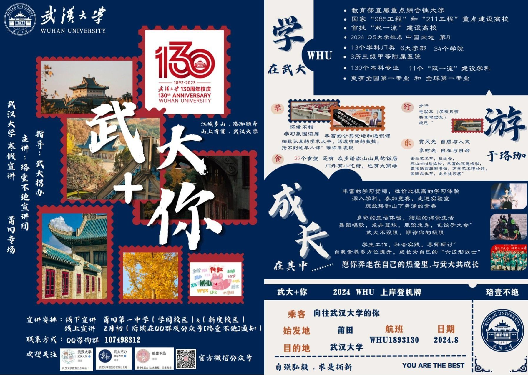 福建招生组,做高考招生的宣传者,做珞珈薪火的传承者,与更多优秀的闽籍学子共聚8月的珞珈山!