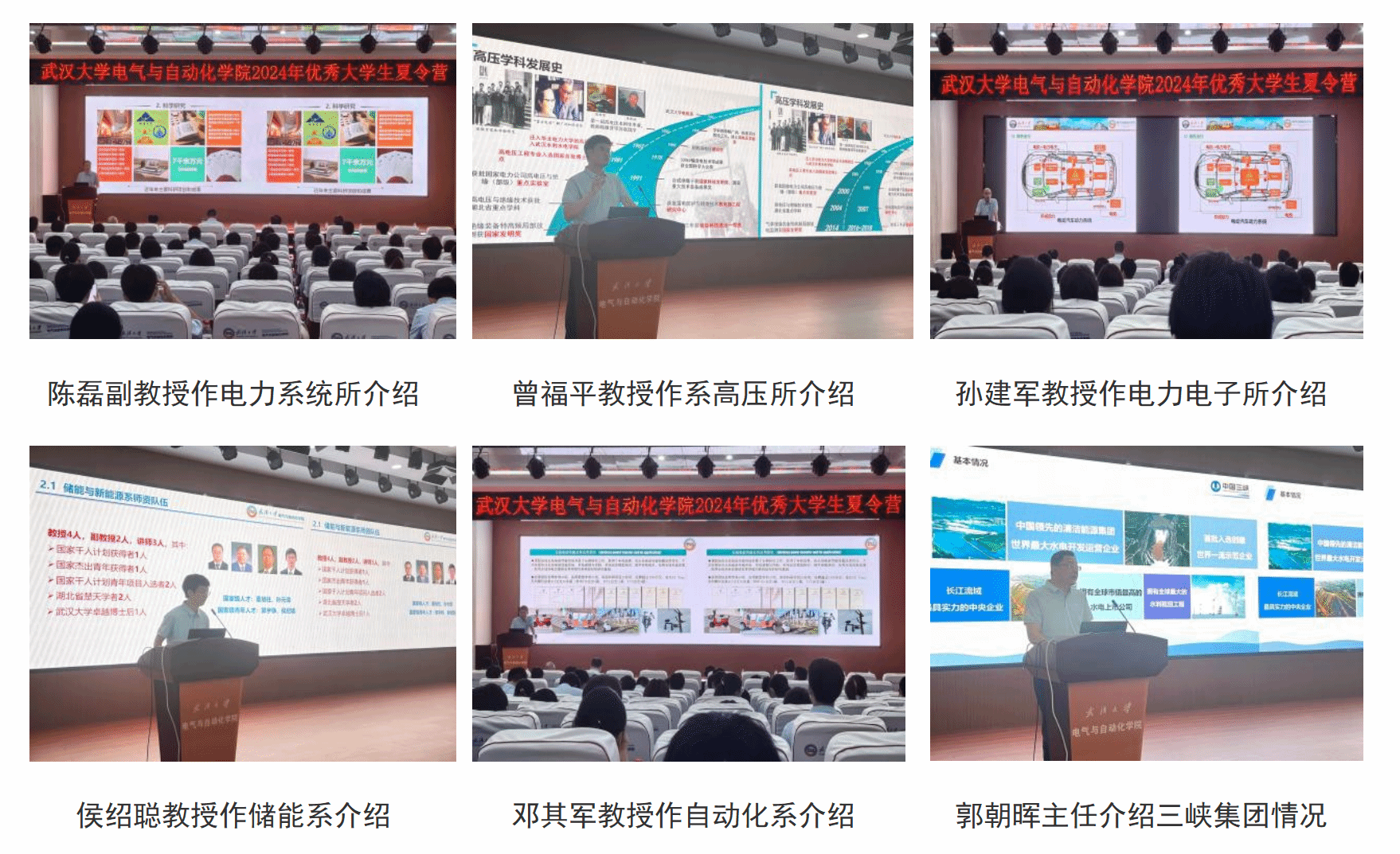 随后,陈磊、曾福平、孙建军、侯绍聪、邓其军五位老师和三峡集团郭朝晖主任分别介绍了电力系统研究所、高电压与绝缘技术研究所、电力电子与电机研究所、储能与新能源工程系、人工智能与自动化系和三峡集团的基本情况与特色优势,带领营员进一步了解学院的人才培养平台与学术科研环境。