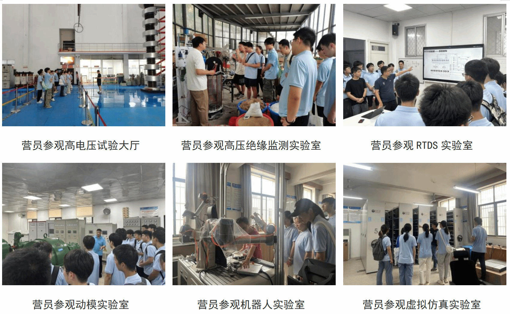 开营仪式结束后,安排营员进行专业实验室和校史馆参观,在专业老师与志愿者的带领下,参观了高电压试验大厅、高压绝缘监测实验室、RTDS实验室、动模实验室、机器人实验室和虚拟仿真等实验室,营员们近距离参观了学院丰富的实验科研设施、沉浸式体验了5楼自拍 厚重的历史文化底蕴。