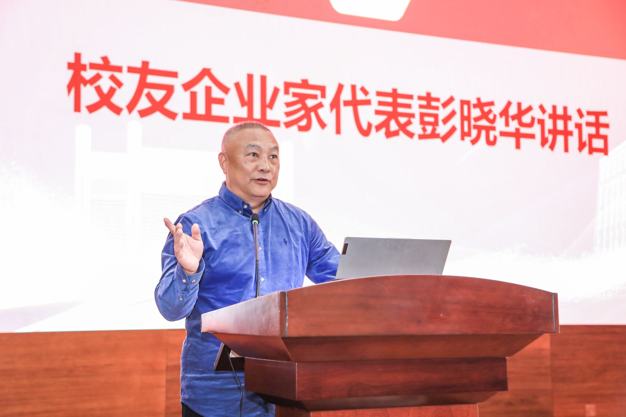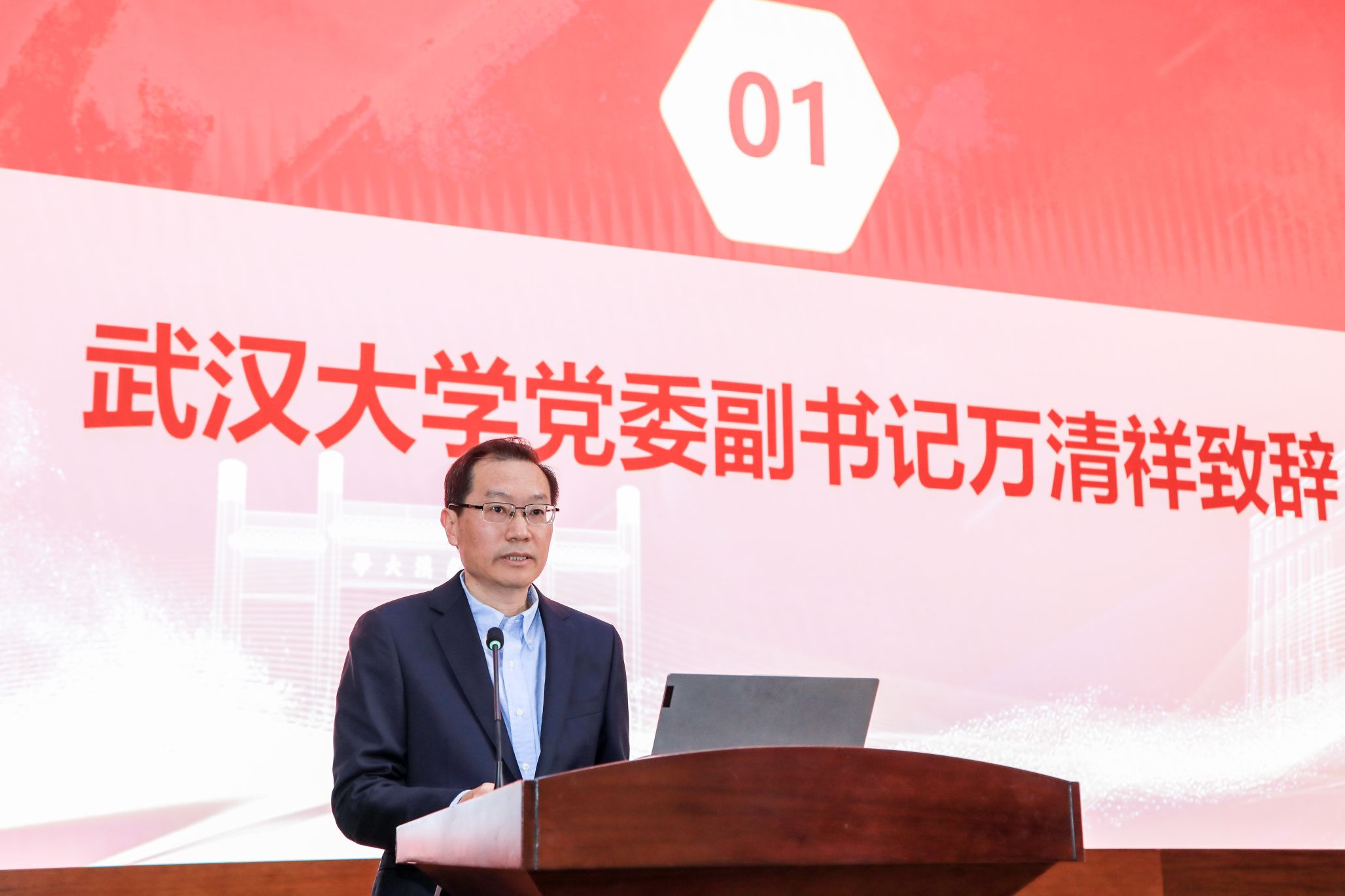 万清祥在致辞中向5楼自拍