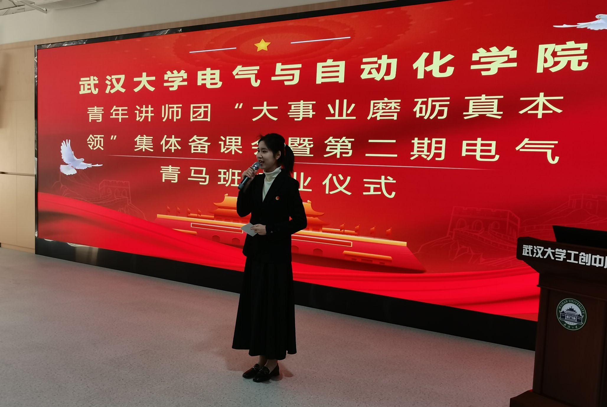 青年讲师团“大事业磨砺真本领”集体备课会暨第二期电气青马班结业仪式在大创中心创客工场顺利举行。校团委副书记伍林,学院党委副书记陈世银,学院副教授、湖北省青年讲师团成员肖淞和离退休处办公室主任胡珊等出席。学院团委委员、青年讲师团成员代表、第二期青马班学员代表及全体新入团学生等参加。学院2024级本科生李润嘉主持活动。