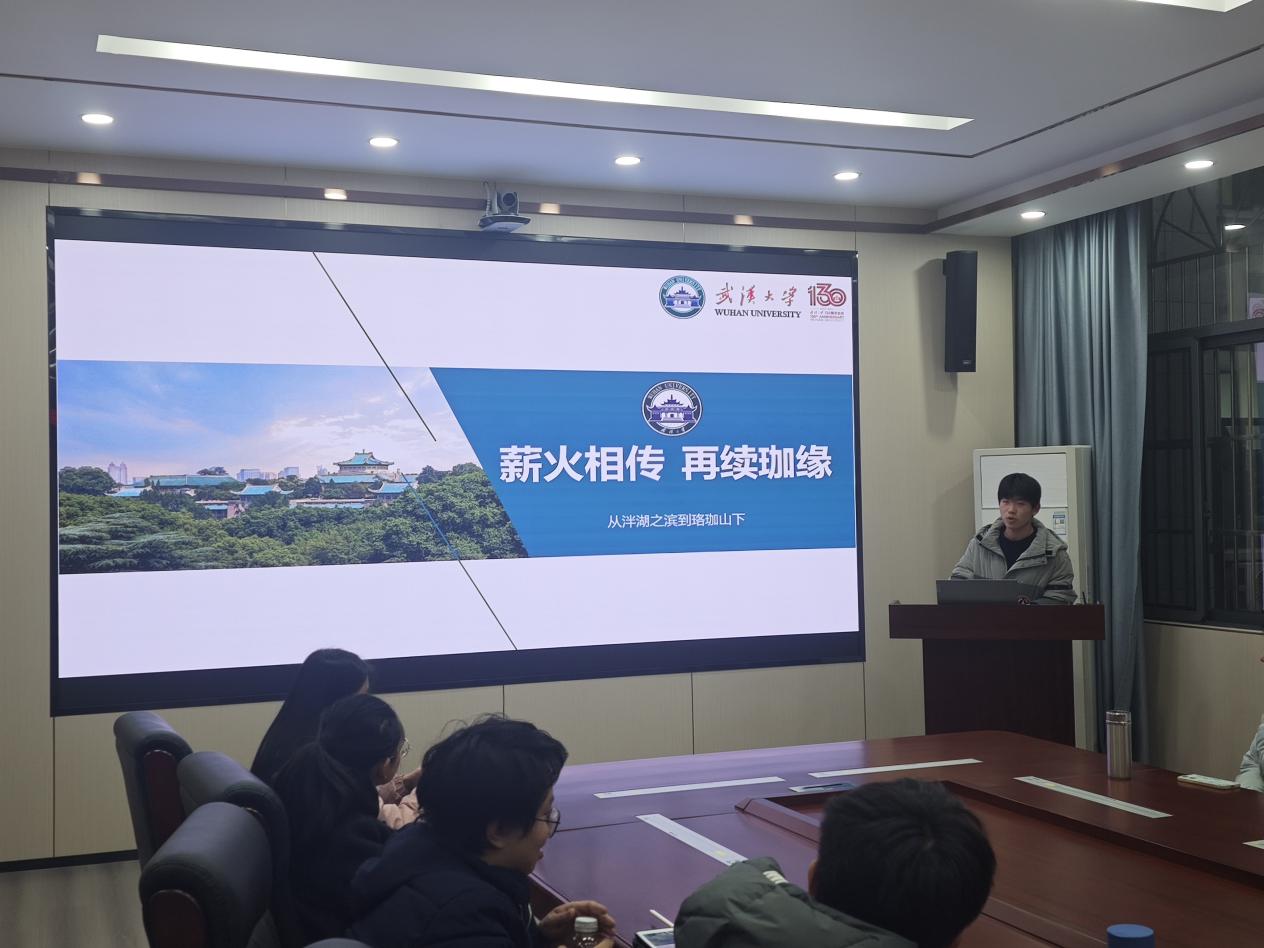 陈世银副书记做总结发言。他首先对大家成功入选寒假实践队表示祝贺,他指出,作为学校寒假实践活动六大专题之一,回访母校既是第二课堂的重要内容,也是大家积极参与到学校招生工作中的重要体现,具有重要意义。他对同学们提出三点期望:一是高度重视,有备而去。各实践队应高度重视前期谋划工作,在组员分工、物料准备、宣讲形式、知识储备等方面做好充分准备,做到手中有粮,心中不慌。二是讲好故事,注重实效。从人才培养、科学研究、学科建设、校友工作、校园生活等方面的最新进展和创新举措着手,讲好武大故事,全方位展示武大风貌,让求学武大这一梦想的种子在母校的高中生中尤其是低年级的学弟学妹们心中生根、发芽。三是凝练反思,善始善终。活动结束后,应趁热打铁,及时做好相关素材的收集、整理以及总结材料的撰写工作,凝练经验、反思不足,为下一届回访母校的学弟学妹们提供经验参考。最后,他叮嘱大家注意安全,预祝各实践队回访母校活动取得圆满成功。