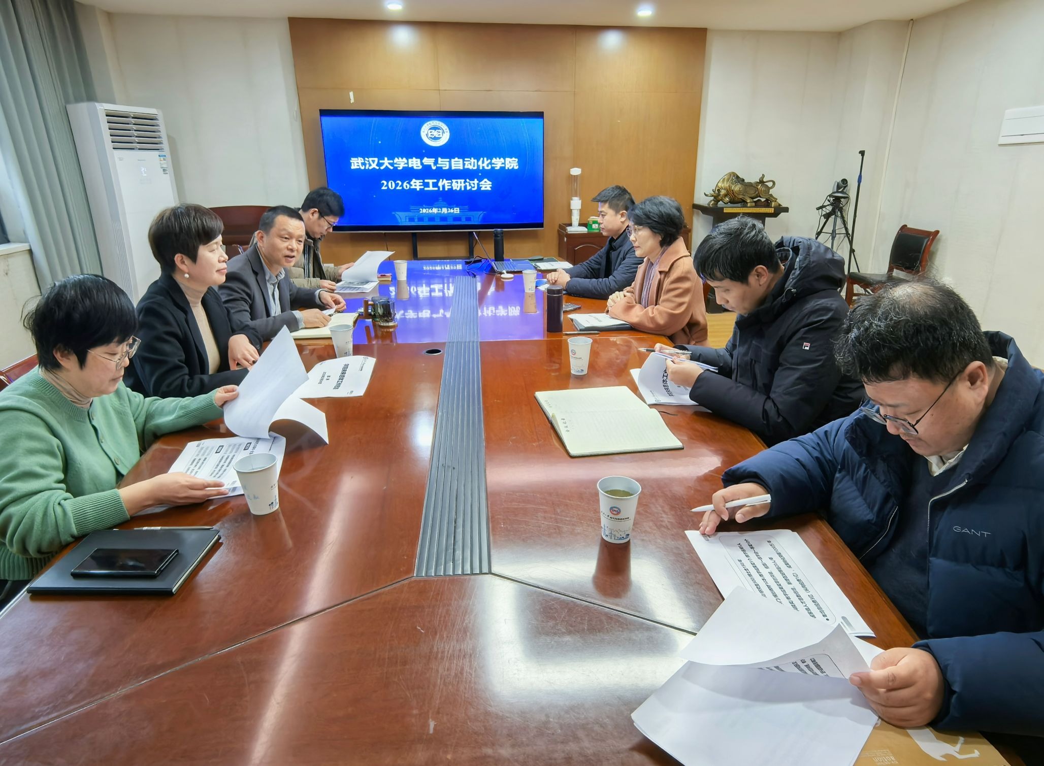 本次会议是在“十四五”收官、“十五五”谋划的关键节点,新学期即将开启的重要时刻召开的一次统一思想、凝聚共识的会议。院长邵涛首先作学院未来发展总体工作思路报告,系统阐述了2026年四大节点事件——新校区规划入驻、“水风光”两重项目建设、全国重点实验室中期评估、“十五五”规划编制的战略意义和推进路径。他指出,要坚决落实立德树人的根本任务;以“调结构、提质量”为核心,优化学科方向布局,开辟电力气象、医工交叉、电力电子化储能等交叉新方向;推动科研成果从数量向质量跃升;提高高层次人才比重;通过渐进式组织模式改革、科学的绩效考核办法,营造风清气正、透明高效的制度环境,激发全员干事创业活力。