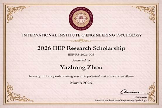 博士研究生周亚中,凭借其在输变电装备智能运维领域的卓越研究成果,荣获国际工程心理学研究所(International Institute of Engineering Psychology,IIEP)设立的“IIEP科研奖学金”。该奖项旨在激发学生的科研热情,提升学术研究水平,并鼓励学术道路上的卓越追求者,是人工智能领域的一项重要荣誉。