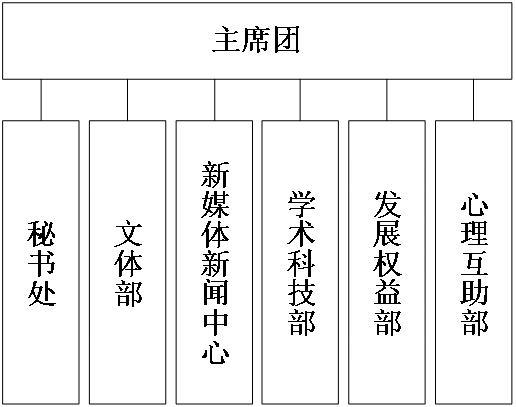 秘书处、心理互助部各设负责人1名,文体部、新闻新媒体中心、学术科技部、发展权益部各设负责人2名。