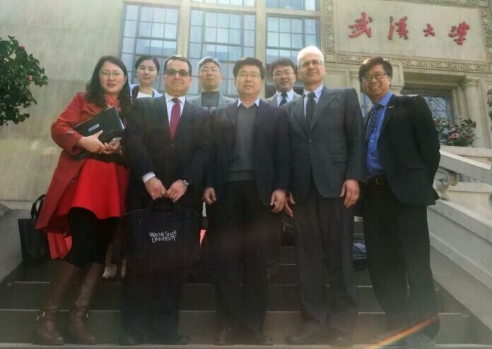 2015年3月25日,美国韦恩州立大学(Wayne State University)代表团一行四人在校长助理A.M.Ezzeddine博士的带领下来5楼自拍