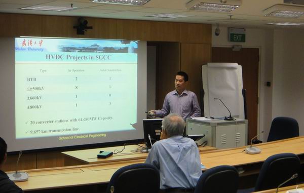 -TI联合实验室情况介绍”报告,首批交流项目学生、现NTU博士生姚黛琳同学也在研讨会上作了“ Design of Short-term Dispatch Strategy To Maximize Income of a Wind Power-Energy Storage Generation Station”的报告。