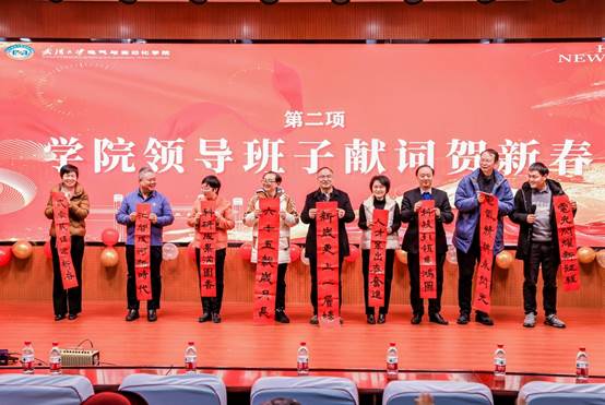 学院领导班子们为大家献上新年祝词,新年的气象在“新时代”“满园春”“展鸿图”的汉字中展现,新年的希冀在“电气精神永闪光,电光闪耀新征程”对联上腾飞。