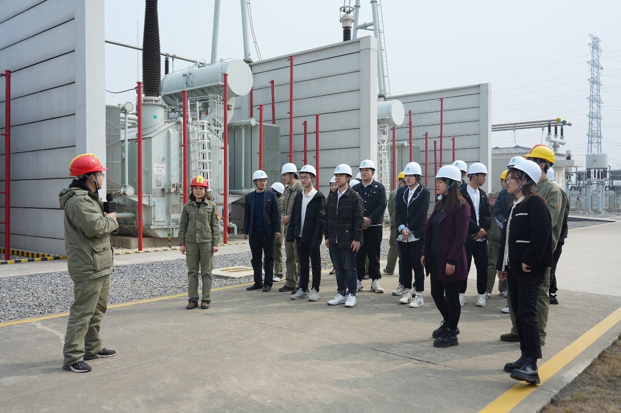 柏泉变电站是湖北省第1座500千伏变电站,同时也是一座集智能化现代化一体的变电中心。国网湖北超高压公司团委书记张楚谦带领学员参观学习了柏泉变电站设备区域,为学员们一一讲解了变压器的工作原理、安全防护措施、一键顺控技术和智能巡检技术。