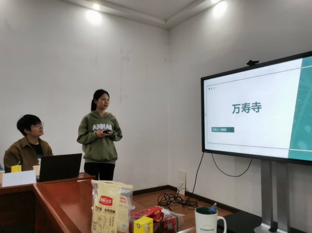 2022级硕士研究生朱婉君为同学们分享的书目是王小波的《万寿寺》。这部偏意识流的小说构筑了两条主线,主人公各自在不同的时空中发展着自己的故事,“文学和想象就是我们心中的避难所,面对有时候让人失望的世界,我们可以走进内心的世界,在那里永远鲜花盛开,永远惹人喜爱,永远浪漫满怀。”读书让她快乐,也让我们被这种快乐所感染。