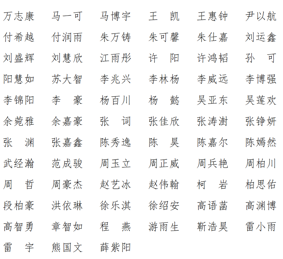 七、优秀学生权益维护工作者(66人)