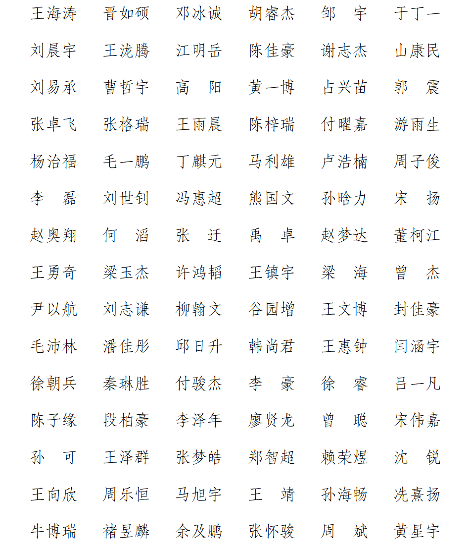 第五次学生代表大会代表选举事宜的通知》有关要求,经各团支部推荐,学院第五次学生代表大会筹备委员会资格审查组审查,拟确定王海涛、晋如硕、邓冰诚等121名同学为本次大会正式代表。现将名单公式如下: