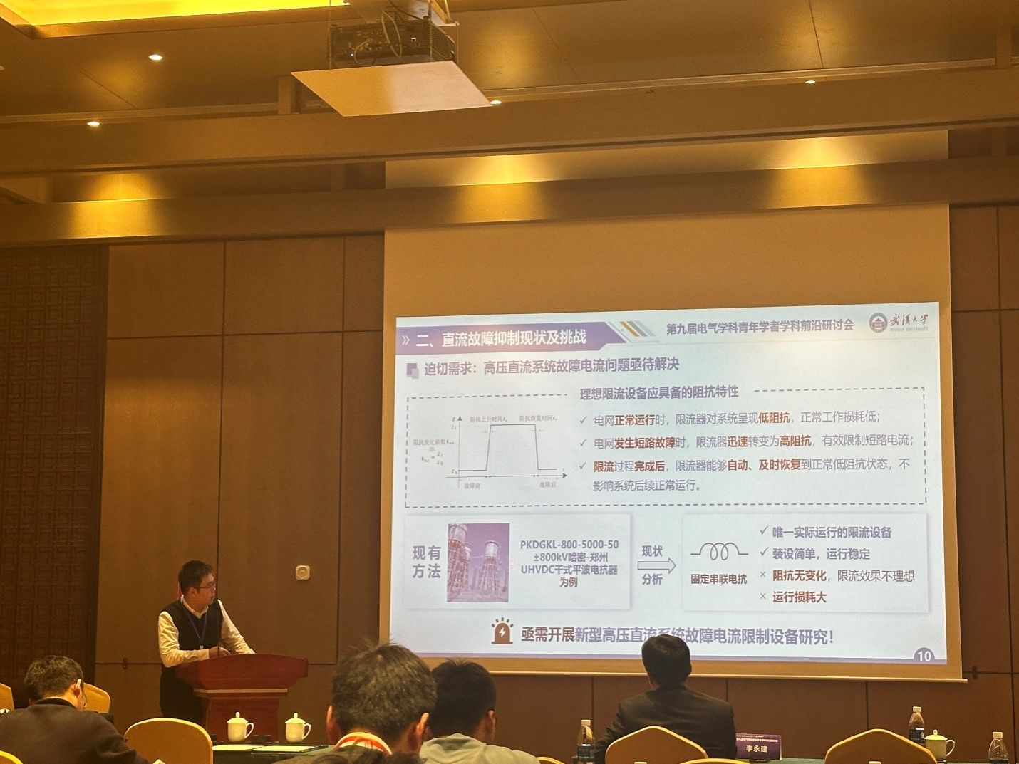 周航博士后的报告题目是《高压直流系统饱和铁心型故障限流器研究进展》,针对高压直流系统“低惯量、低阻尼”特性导致的系统短路故障上升快、峰值高、难以开断这一关键问题,提出了一种基于磁性材料磁化非线性特性的饱和铁心型直流故障限流技术,报告了限流器电气参量高效解析计算方案、限流器高性能拓扑结构升级方案、限流器断路器协同工作控制方案等方面的研究进展,并对后续研究提出展望。。