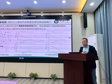 工程研究中心主任王建国教授汇报了工程研究中心的基本情况和2023年度主要工作。周蜜副教授作《集成装备雷击致灾机理及效应防护》、鲁海亮副教授做《高压直流接地极技术研究进展》、李祎副研究员做《电力装备微纳能源与自供电传感方法与器件》学术报告。