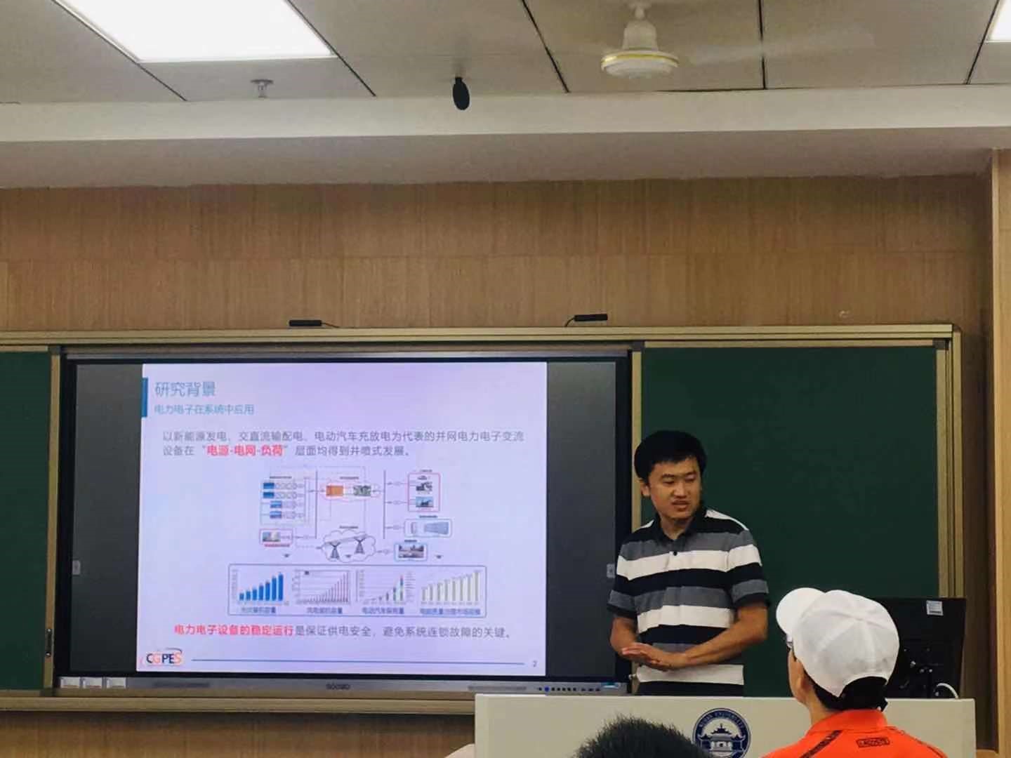 潘尚智教授以《基于磁路耦合的电力电子变换器技术研究》为题进行了学术分享。在目前电力电子技术发展中,高频高功率密度是电力电子变换器发展的趋势,而电感电容原件是制约变换器功率密度提高的主要因素。基于此,潘尚智教授结合了光伏并网逆变器的应用背景,针对光伏并网逆变器的储能电容、电流纹波、功率平衡等问题,介绍了磁路耦合的多端口变换器技术、并网纹波衰减技术和部分能量传输技术在减小变换器体积、提高变换器效率和可靠性等方面的应用与研究。在场的老师学生均踊跃发言,大家对基于磁路耦合的磁通抵消原理进行提问,潘老师从多端口变压器内部能量传递角度进行了详细解释,张慧老师也对在变换器中添加移相控制对纹波抑制的效果以及适用工况等进行了提问,潘老师一一解答,主持人王军华老师更是将复杂的科学技术转化为生活中的小常识为在座学生进行了讲解,生动有趣。
