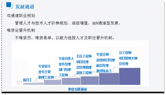 7.职业生涯发展多通道:技术序列、管理序列、干部序列;