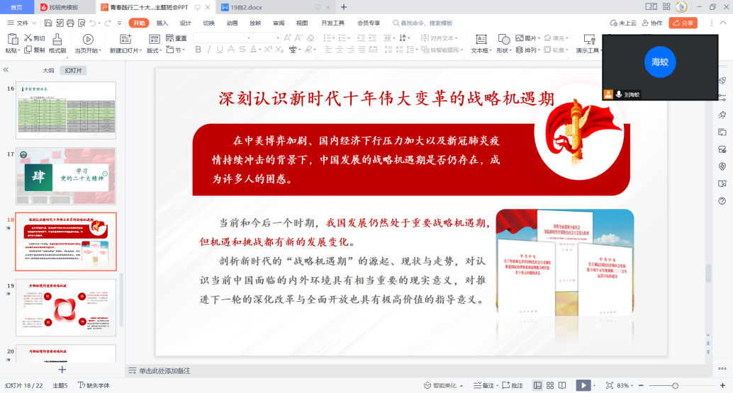 下面就是班会里的重要环境,和同学们一起学习二十大精神,与大家一同讨论当代青年应该如何把握历史机遇。