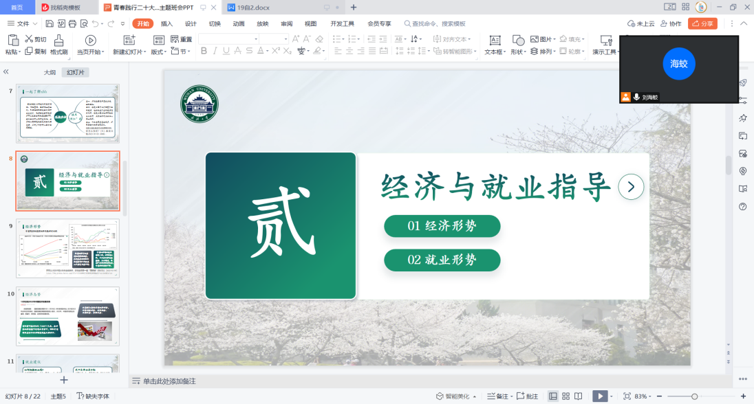 为了响应学校号召,共学二十大精神,2019级自动化二班于202334号开展了一次“青春践行二十大”系列主题班会。本次班会在腾讯会议中举行,主要分为两个部分,第一部分主要由班长刘海蛟进行二十大精神主题的讲解,第二部分由班主任孟红霞老师为同学们答疑解惑。