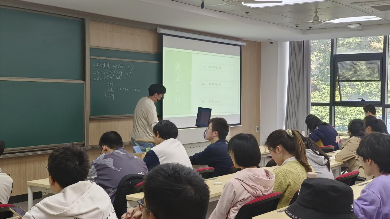 王琪学长结合自身经验,为同学讲述面试的注意事项以及备考的方法策略。同时,他又结合历年就业数据,为同学们分析了5楼自拍