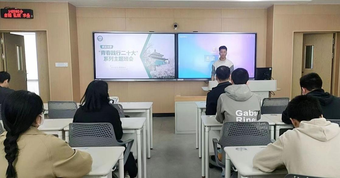 班会的最后,由各班团支书和老师带领全体同学学习了党的二十大精神,深刻认识了新时代十年伟大变革的战略机遇期,并深入了解了外部环境、内部环境、青年人才三个方面的重要战略机遇。随后,以三名珞珈榜样为例,同学们了解了该以怎样的方式提升自己,争取不负青春,不负韶华,不负时代。