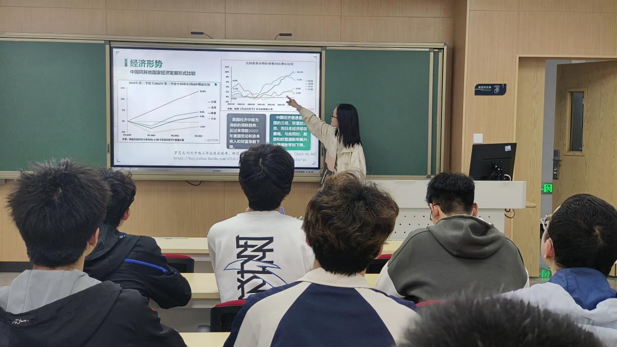 各班班长以图表的形式向大家展示了中国同其他国家经济发展形式的比较,并学习了2022年中国经济发展态势,了解了中国经济呈现出总量增、质量升、韧性强、走向好的发展态势。这使同学们对未来的经济发展和就业形势有了更加乐观的认识。随后,就调整就业观、提升竞争力、求职细节、求职挑战四个方面对同学们提出了就业建议,并给出了考证指导供同学们参考。