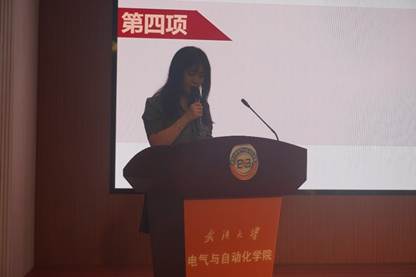 长期关心与支持学校团学工作的领导、老师以及兢兢业业为同学服务的研究生会骨干们表示了诚挚的感谢,肯定了电气学院第四届研究生会在思想引领、组织改革、科技创新、文体实践、就业权益等方面的累累硕果。迟书记指出,新一届研究生会骨干要传好接力棒,持续增强研究生会的组织战斗力、凝聚力和影响力,坚持务实、高效的工作作风,引导研究生全面发展,促进广大同学成为知识广博、人格健全、本领过硬和情商高尚的复合型人才。