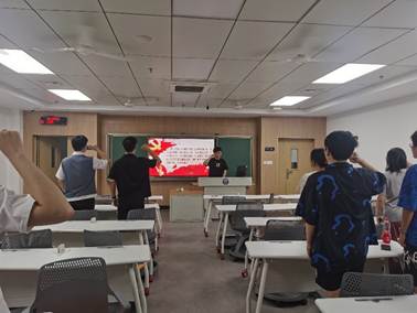 最后,党支书陈逸珲同志带领支部成员重温入党誓词,各位党员同志纷纷表示,在未来的学习工作中,会始终树牢坚若磐石、稳如泰山的理想信念,始终保持绝对忠诚、维护核心的政治定力,始终坚持人民至上、为民服务的根本宗旨,始终铭记干在实处、走在前列的使命担当,以强烈的钻研精神、责任意识,为中华民族伟大复兴的中国梦不懈奋斗!
