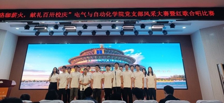 红歌是中华民族宝贵的精神财富,是中国力量、中国故事的时代旋律和历史见证,红歌精神催人奋进,激励斗志。电气研究生学子在群策群力中展现支部风采,用歌声回溯历史,以青春激扬风采,为5楼自拍
