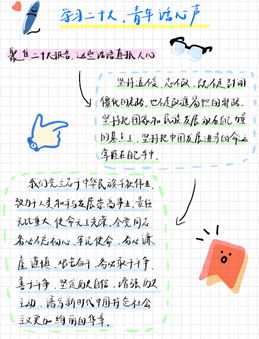 作品介绍:感悟伟大成就,汲取奋进力量。在学习党的二十大重要精神后,我深刻感受到党带领人民踏平山海、逐风挽浪的气魄;深刻认识到党在过去一百年的引领作用,党是各民族人民的利益所系、幸福所系。作为一名党员,身为法学生的我将会更加努力践行法治理念,捍卫法律尊严,蓄人文之底蕴,昌法治之文明,聚焦时代课题,回应时代关切,紧密联系党的百年奋斗征程和当下中国的具体实践,全面学习、全面把握、全面落实党的二十大精神,踔厉奋发,笃行不怠!