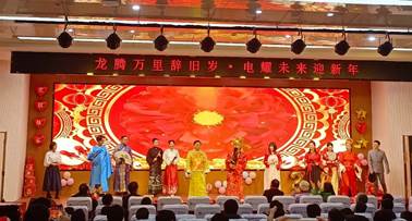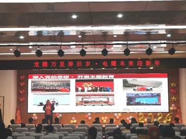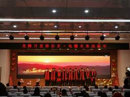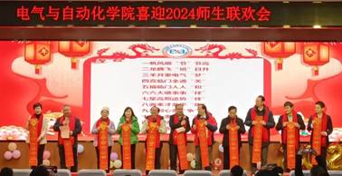 “一帆风顺节节高”“二龙腾飞旭日升”“三羊开泰电气梦”“四喜临门全通关”……院领导班子成员戴着喜庆的红色围巾,一一登台,向全院师生致贺词,送祝福,鼓励电气师生在未来的日子里坚持砥砺前行,勇往直前。
