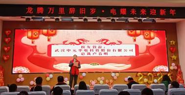 随后,学院知名校友、武汉中元华电科技股份有限公司总裁卢春明先生莅临致辞。卢总裁讲述了自己的奋斗历程,号召电气学子用梦想指引方向,坚持实业报国,为电力发展贡献力量。对于母校,他饱含感恩之情,祝愿学院在2024年的发展再上新的台阶。
