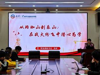 举办主题党课学习活动,党委副书记孟威以“从珞珈山到乐山:在战火纷飞中潜心为学”为题作分享,辅导员邹春航、研究生党总支委员及各党支部书记参加学习。