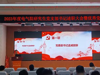 研究生2023年度党支部书记述职暨优秀党支部评选表彰大会在学院报告厅顺利召开。学院党委副书记孟威老师,党委组织员彭赟老师,学工办副主任彭思成老师,研究生辅导员邹春航老师,研究生兼职辅导员刘运鑫老师出席本次大会并担任评委,学院研究生党总支、各党支部书记、支部委员和党员代表参加本次大会,会议由党总支委员吕鑫衡主持。