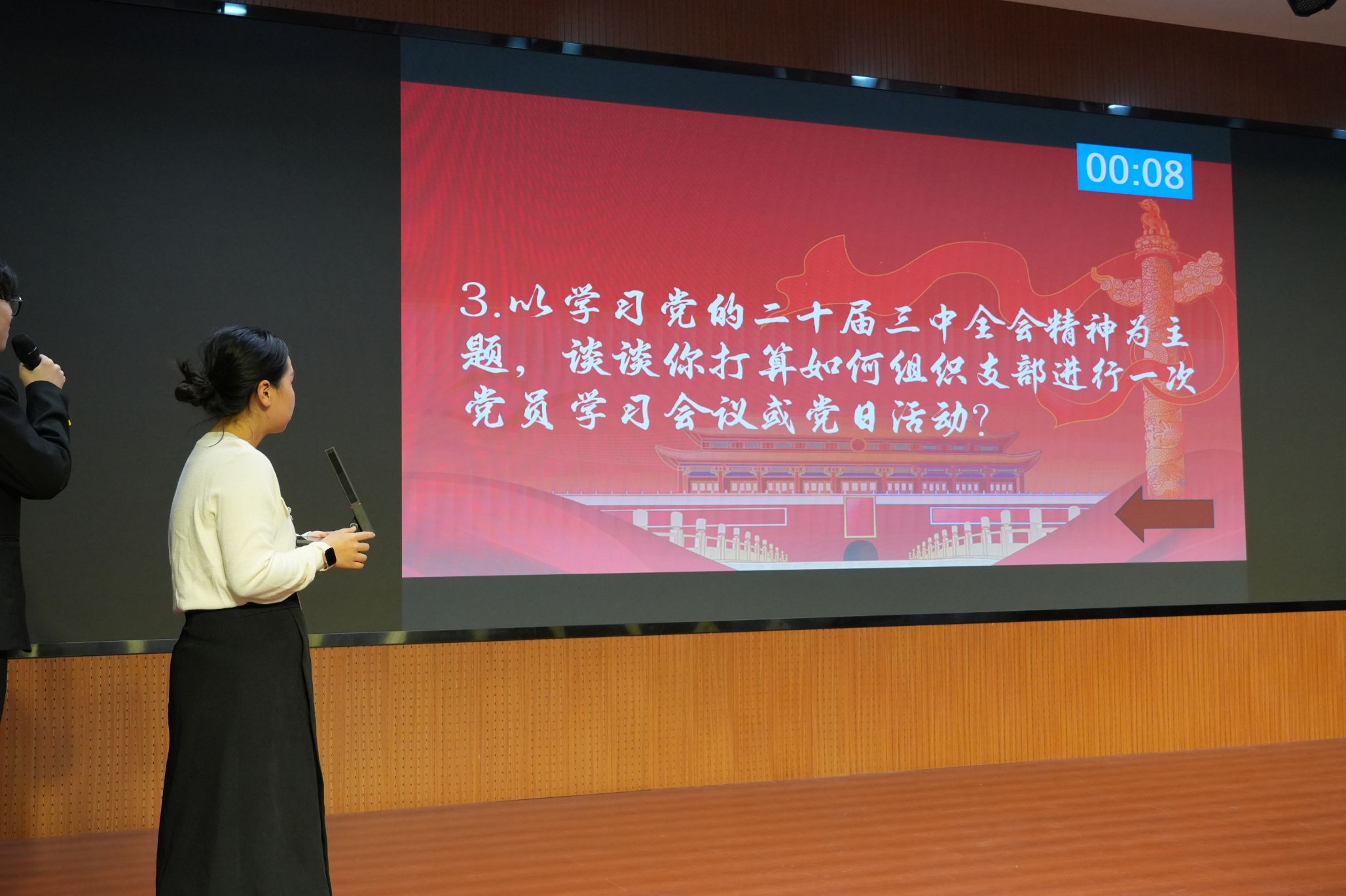 在党支部实操风采展示环节,针对基层党组织在日常工作中经常遇到的各类问题,参赛的各党支部代表结合个人实践经验,提出了诸多切实可行的解决方案。这一环节不仅彰显了新时代研究生党员骨干将党的理论知识深植于心、实践于行的青春风采,更是他们以实际行动推动研究生党建工作向纵深发展、落地生根的有力证明。