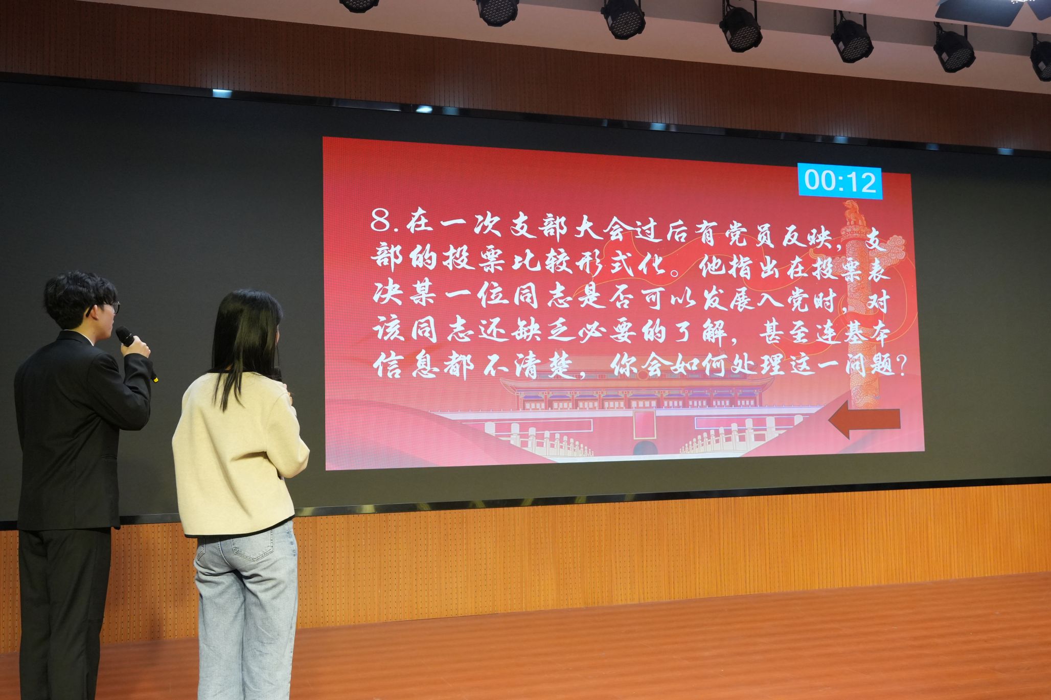 在互动环节中,场内观众踊跃参与,就党的理论知识等内容进行了深入交流与互动。这一环节不仅展现了当代研究生党员丰富的理论知识储备,也激发了大家的学习热情与参与感。