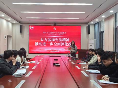 研究生会全体成员在学院第四会议室集合,首先深入学习习近平法治思想,领会国家宪法精神的深刻内涵。通过讨论与发言环节,为推进学校的宪法科普与教育,进一步营造尊崇宪法、学习宪法、遵守宪法、维护宪法、运用宪法的良好氛围建言献策。
