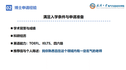 杨泽鸿同学详细介绍了海外留学申请过程中的几个核心指标。首先是学术背景与成绩,成绩是海外高校筛选申请者的一个重要依据。同时,针对博士研究生的申请,他指出如果大家在研究生阶段有着出色的科研经历,一定可以显著地提升申请竞争力。最后,杨泽鸿同学特别鼓励各位同学寻找熟悉自己且在该领域内有一定名气的老师撰写推荐信,在推荐信与个人陈述的准备环节做足工作。